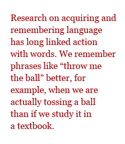 Learning language through (e)motion Creating that community has had its own remarkable effect, which goes directly to the central mission of the school: helping its language learners to communicate successfully in English. “One of our rules is to do your best to speak English on the field,” said Ben Gucciardi. “And I think that really helps. There are certain times when they are just forced to speak English in order to communicate with teammates from different language groups. There’s no other way.” The research on acquiring and remembering language has long linked action with words: we remember phrases like “throw me the ball” better, for example, if we are actually tossing a ball than if we study it in a textbook. More recently, cognitive scientists have theorized that thought, memory, and language derive from actual motor and sensory experience. According to this view, what we know and how we reason—whether we are kicking a ball into a goal or curled up with a good book—depends on activity in the same neural systems used for perception, action, and emotion. This understanding has important implications for how English language learners in high school enter academic discourse and come to conceptual understanding of abstract phenomena. The young soccer players on the fields behind Oakland International provide a rich picture of English language proficiency progressing (quite literally) by leaps and bounds. Caught up in the physical and emotional flow of the game, they let go of their fears and call out to each other freely, reinforcing with every play their growing understanding of meaning in their new language. “On the soccer field it was like I was in another world,” said Ravis. “Everything they would tell me, it would just get in my head—I was like, ohh!” Helen, from the girls team, agreed with him. “It’s more free outside,” she explained: